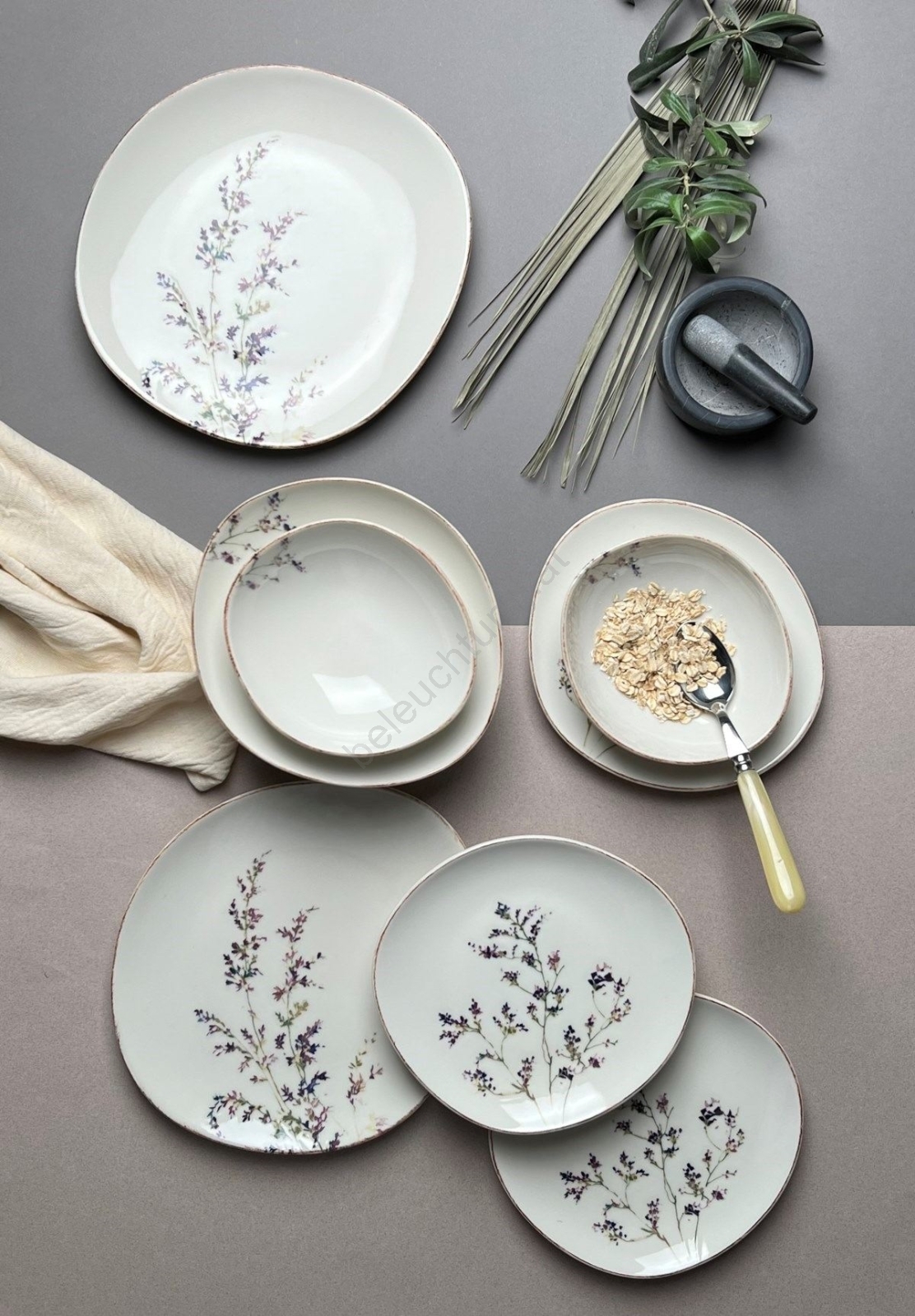 • 12-teiliges Porzellan-Geschirrset, weiß/lila