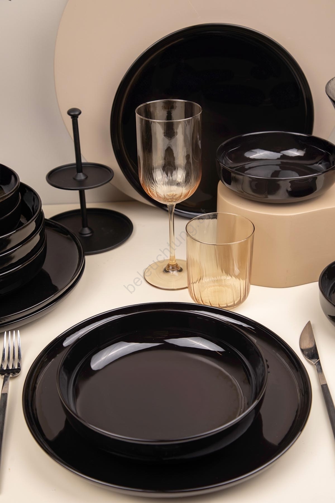 12-teiliges Speiseservice, schwarz/Porzellan