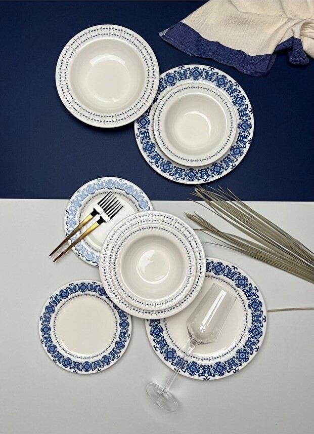 16-teiliges Porzellan-Tafelservice, blau/weiß