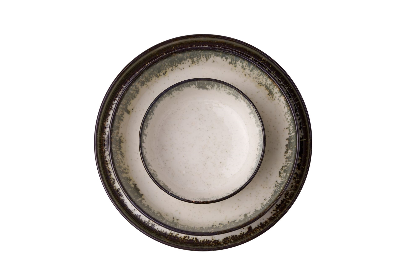24-teiliges Essservice aus Porzellan, weiß/braun