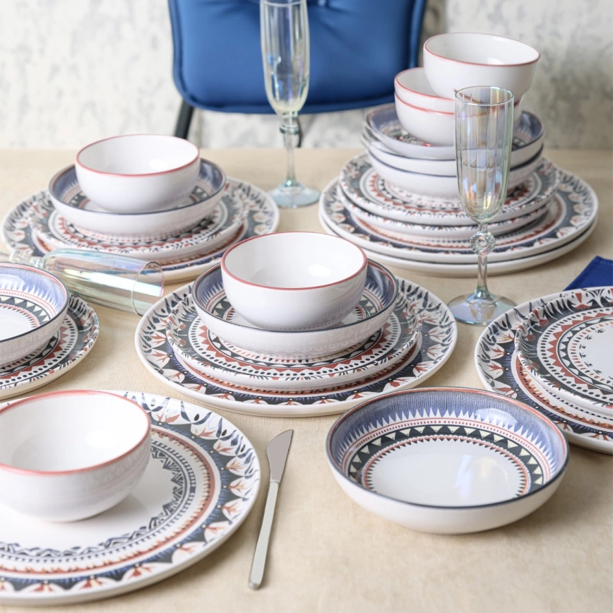 24-teiliges, farbenfrohes Geschirrset aus Steinzeug