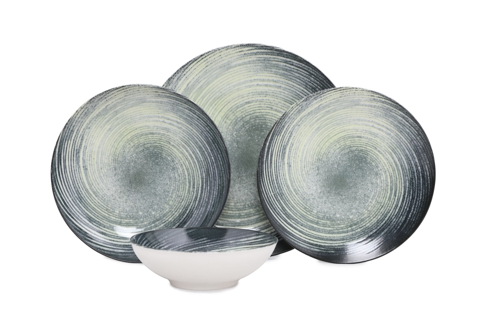 24-teiliges Geschirrset grün/schwarz/Porzellan