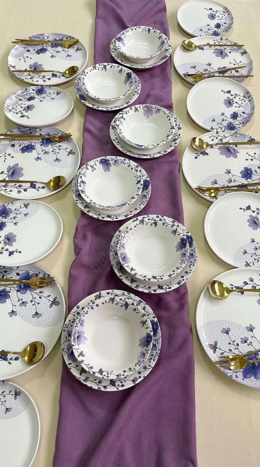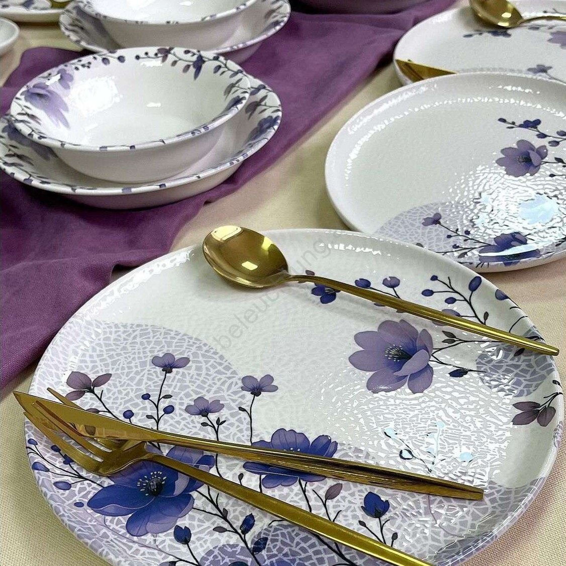 24-teiliges Geschirrset, weiß/lila, Keramik