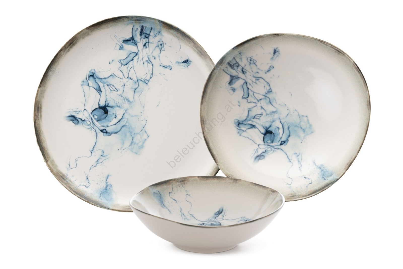 24-teiliges Speiseservice aus Porzellan, weiß/blau