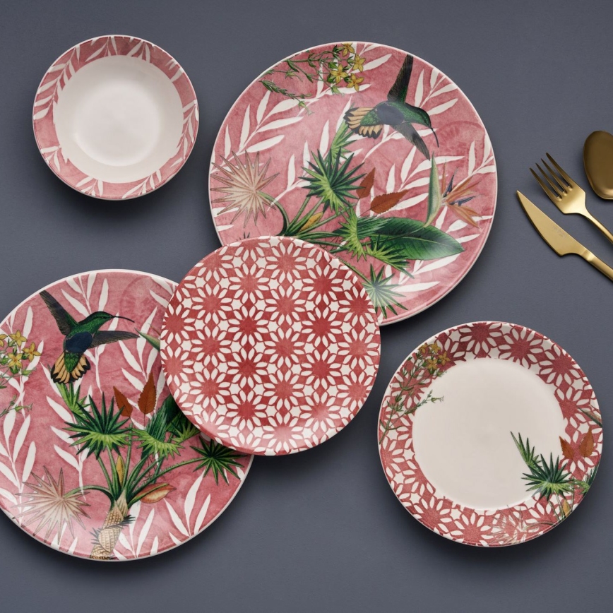 24-teiliges Speiseservice, rot/grün/weiß, aus Keramik