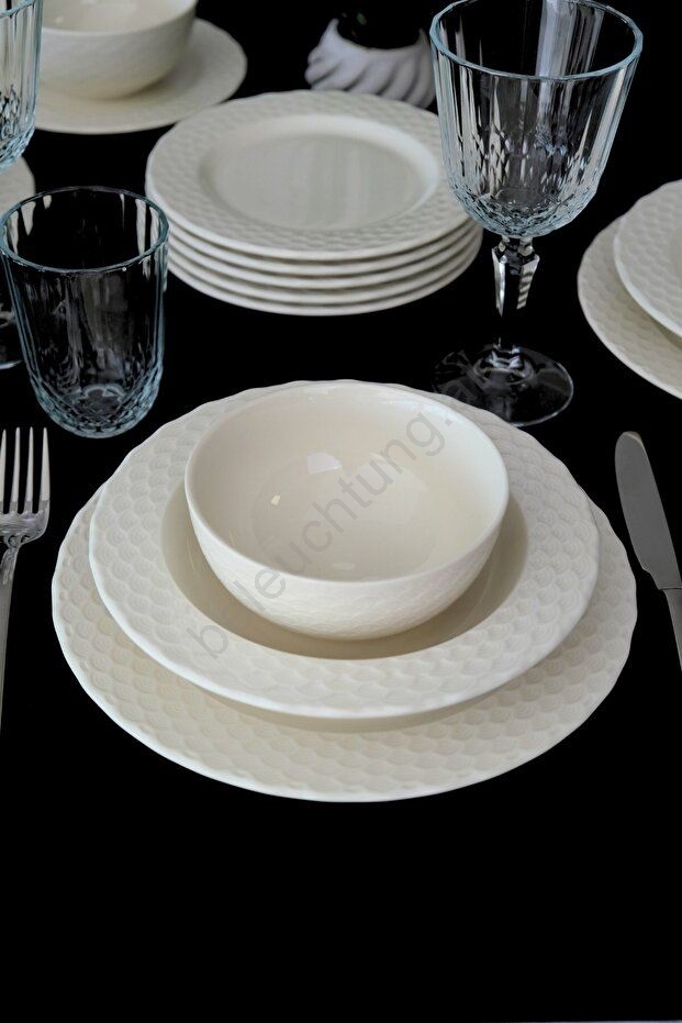 24-teiliges Tafelservice aus Porzellan, weiß