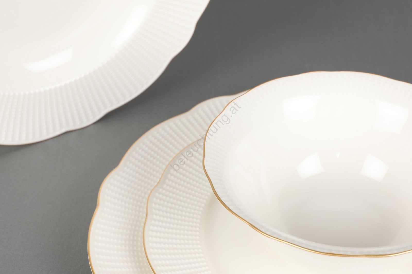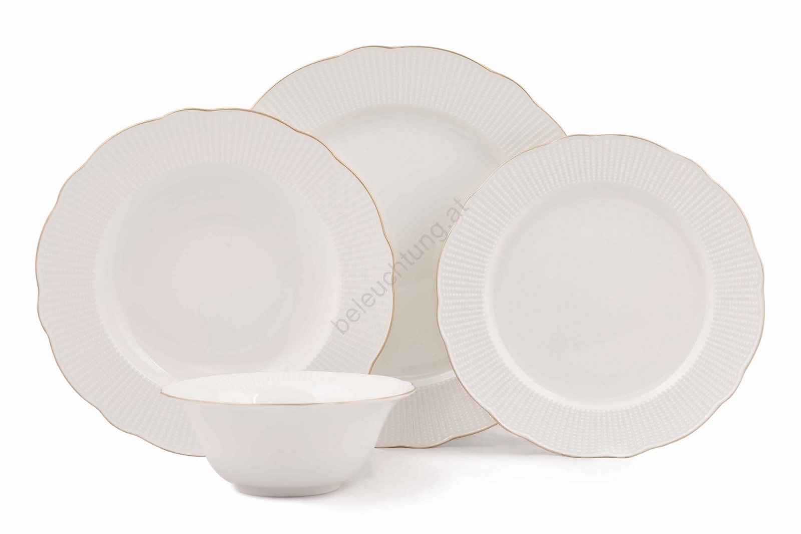 24-teiliges Tafelservice aus Porzellan, weiß/gold