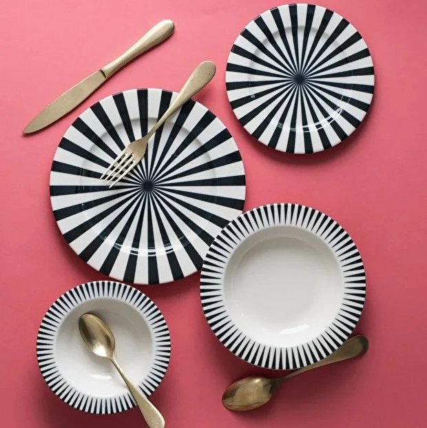 24-teiliges Tafelservice aus Porzellan, weiß/schwarz