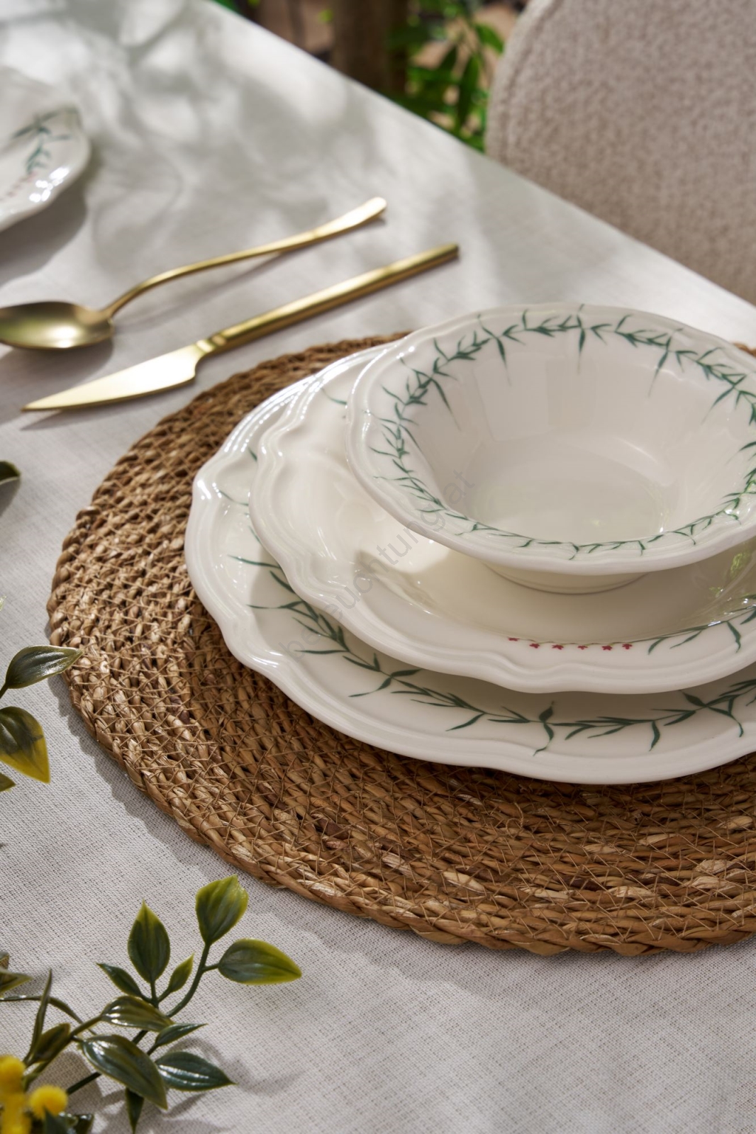 24-teiliges Tafelservice, weiß/grün, Porzellan