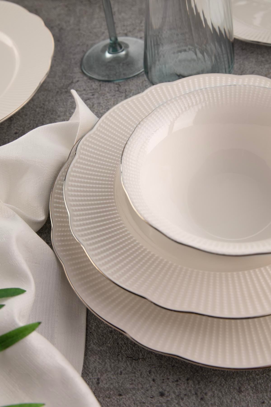 26-teiliges Geschirrset aus Porzellan, weiß/silber/elfenbein