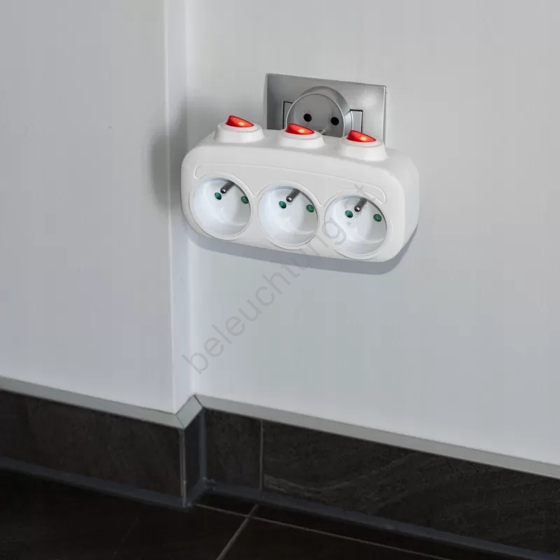 • Mehrfachsteckdose mit 3 Schutzkontakt-Steckdosen.