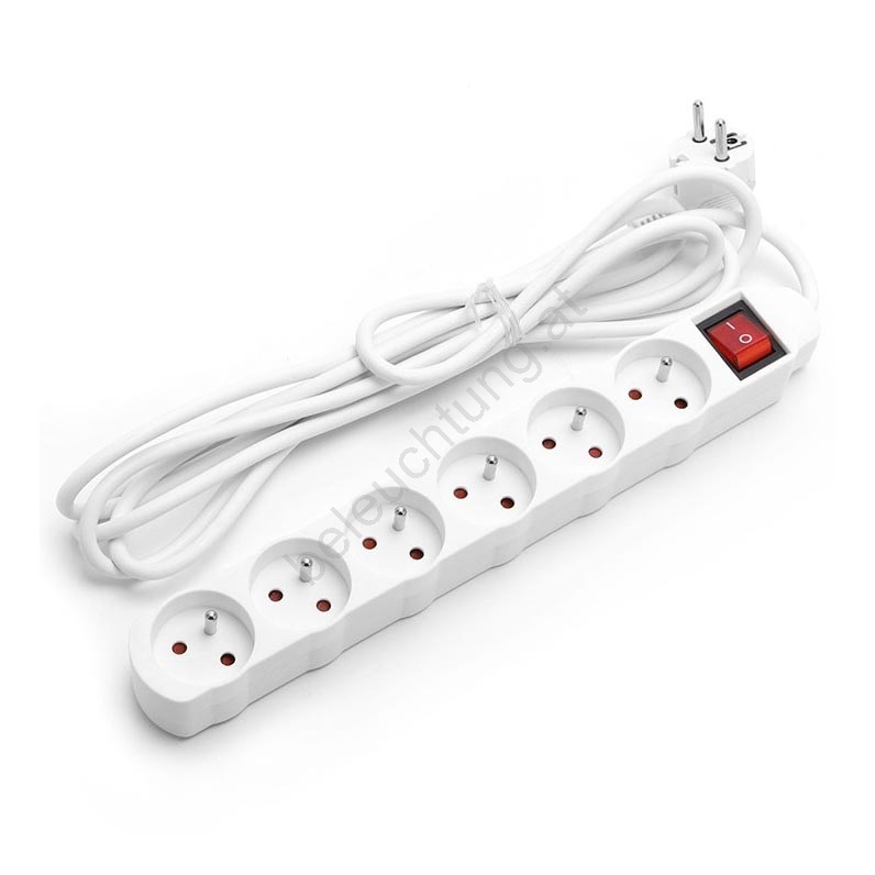 Aigostar - Verlängerungskabel mit Schalter 6-fach 5m weiß