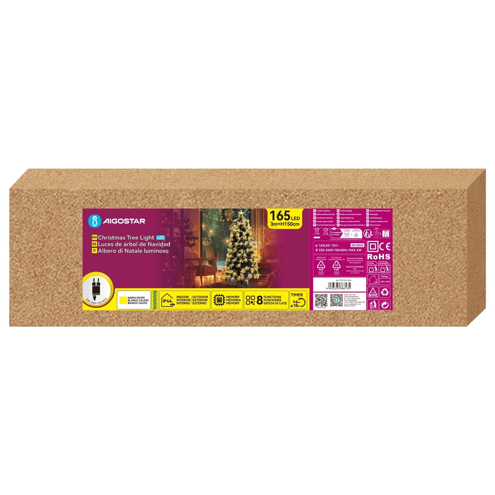 Aigostar - LED-Außen-Weihnachtsbaum, 165 LEDs, 8 Funktionen, 1,5 m, IP44, warmweiß