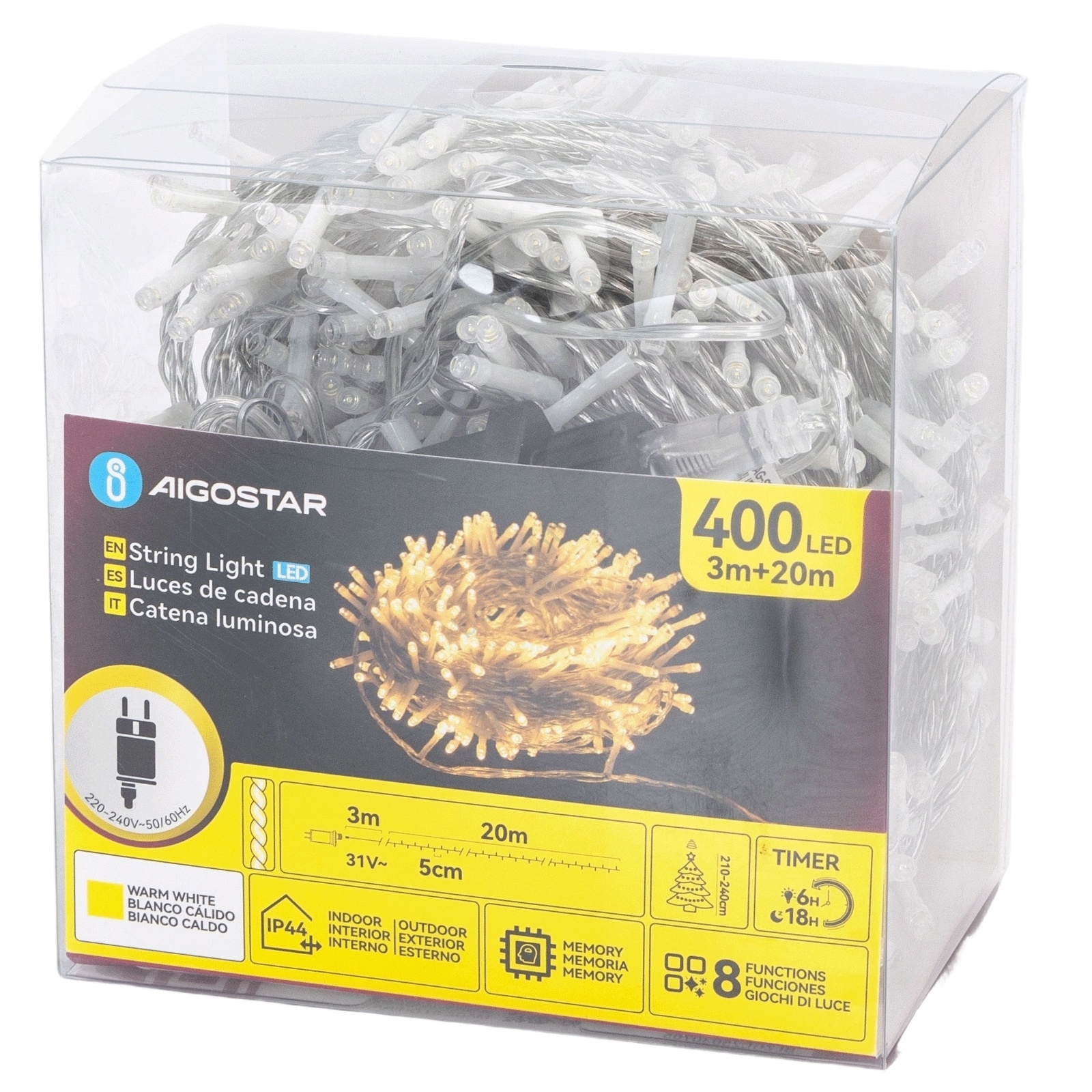 • Aigostar - LED-Außen-Lichterkette 400 LEDs/8 Funktionen 20 m IP44 warmweiß