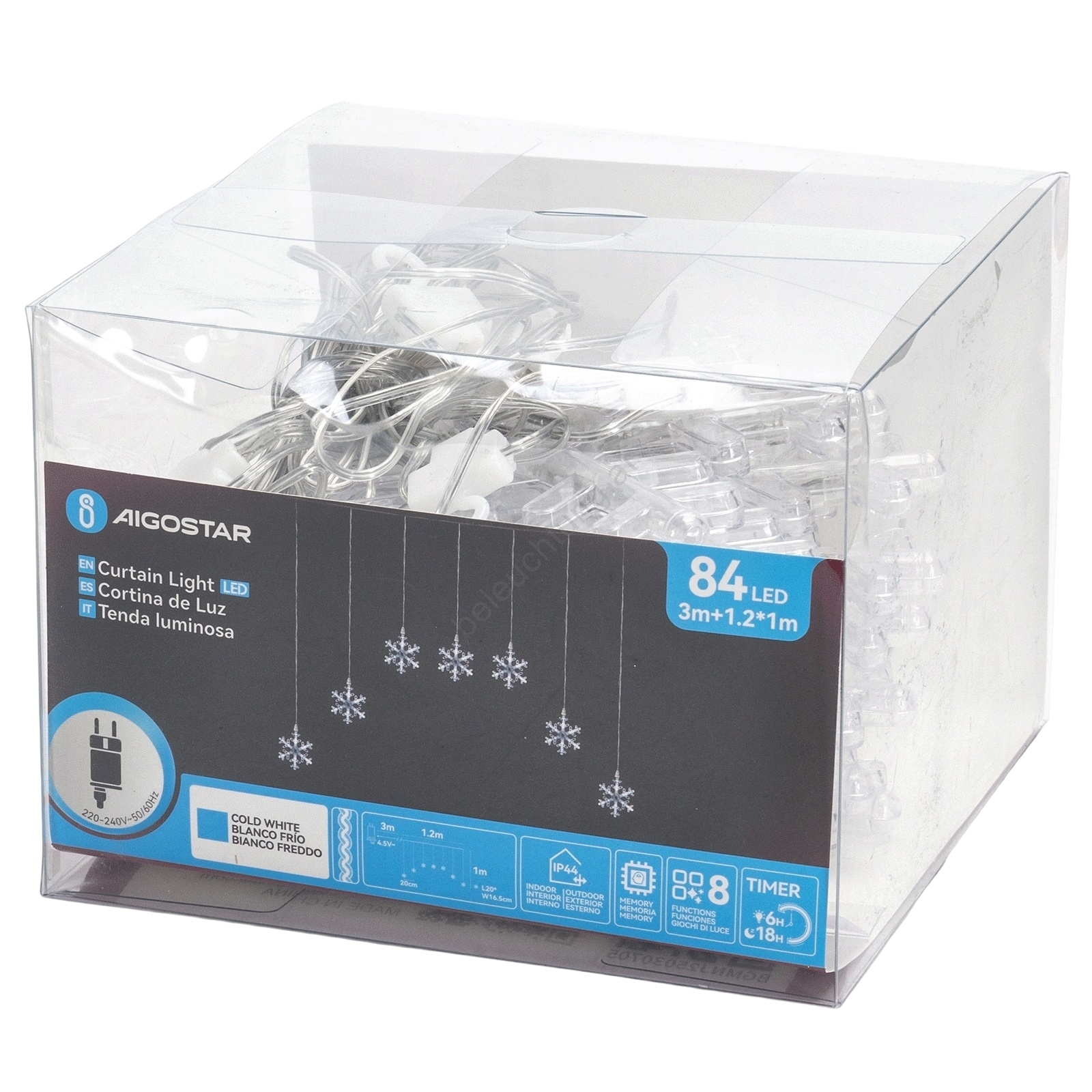 • Aigostar - LED Außen-Weihnachtslichterkette 84xLED/8 Funktionen 1,2x1m IP44 kaltweiß Schneeflocken