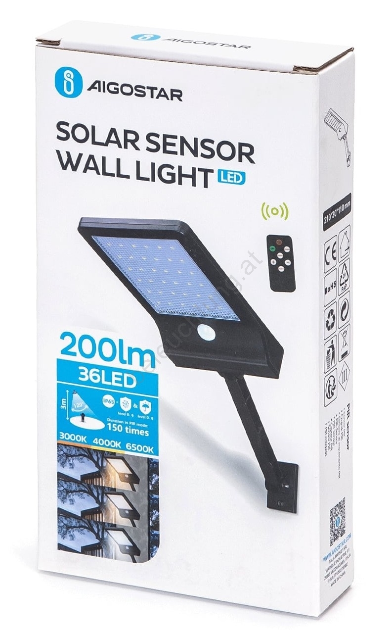 Aigostar - LED dimmbare Solarlampe mit Sensor LED/2,3W/5,5V IP65 1800 mAh + Fernbedienung