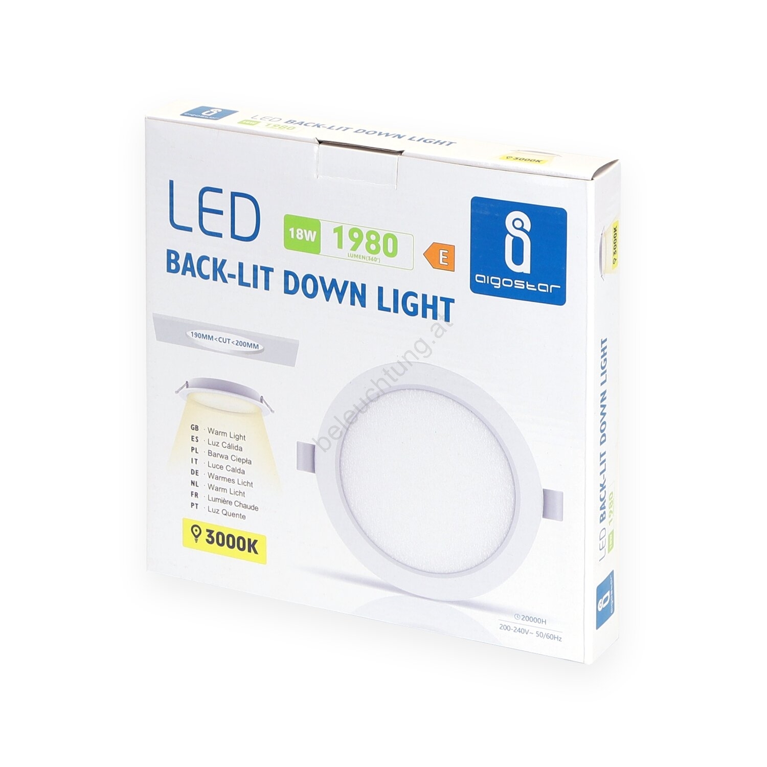 • Aigostar - LED-Einbau-Downlight, 18 W / 230 V, 3000 K (Warmweiß), Ø 22,2 cm, Weiß