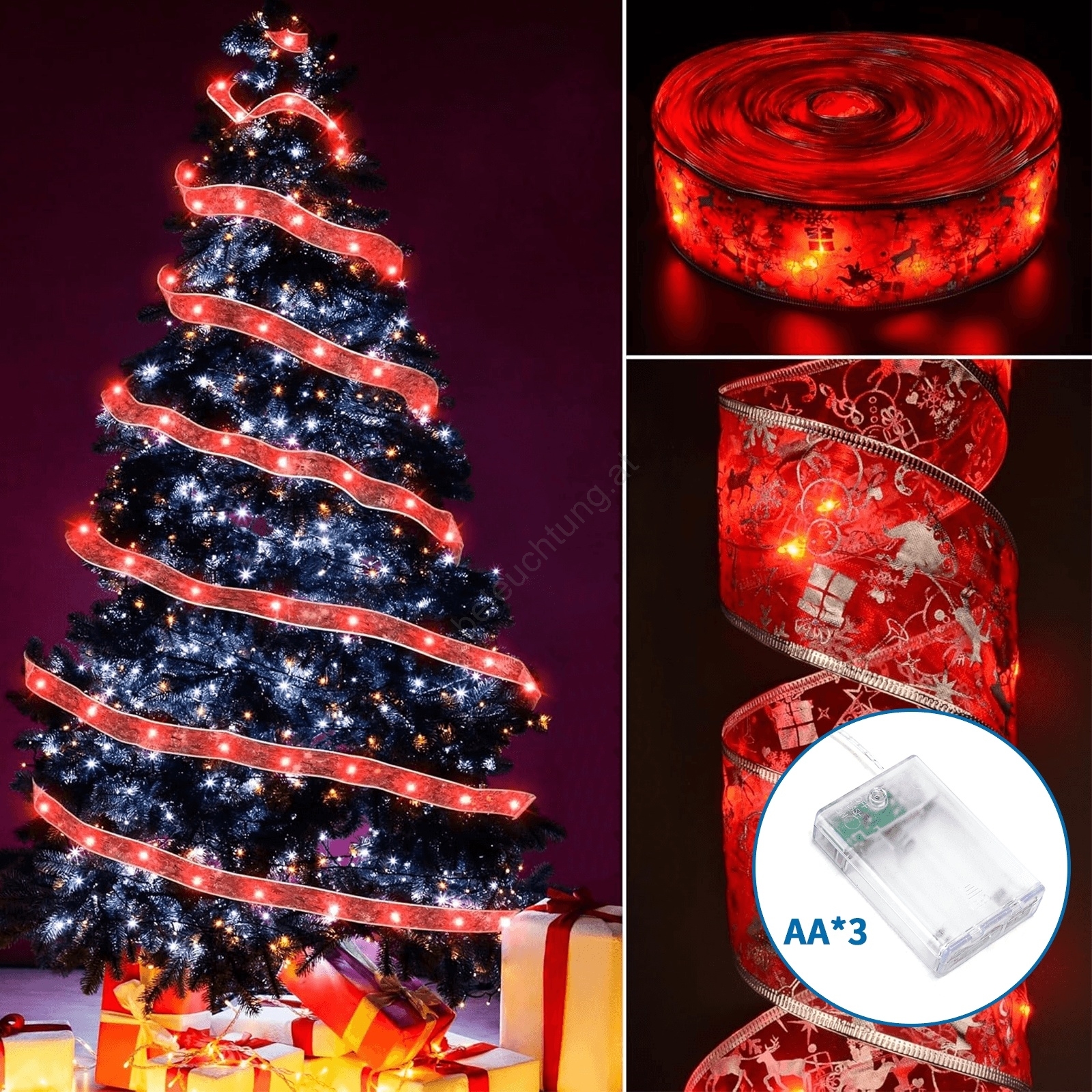• Aigostar - LED-Lichterkette 50 LEDs / 3×AA, 5 m, warmweiß, rot