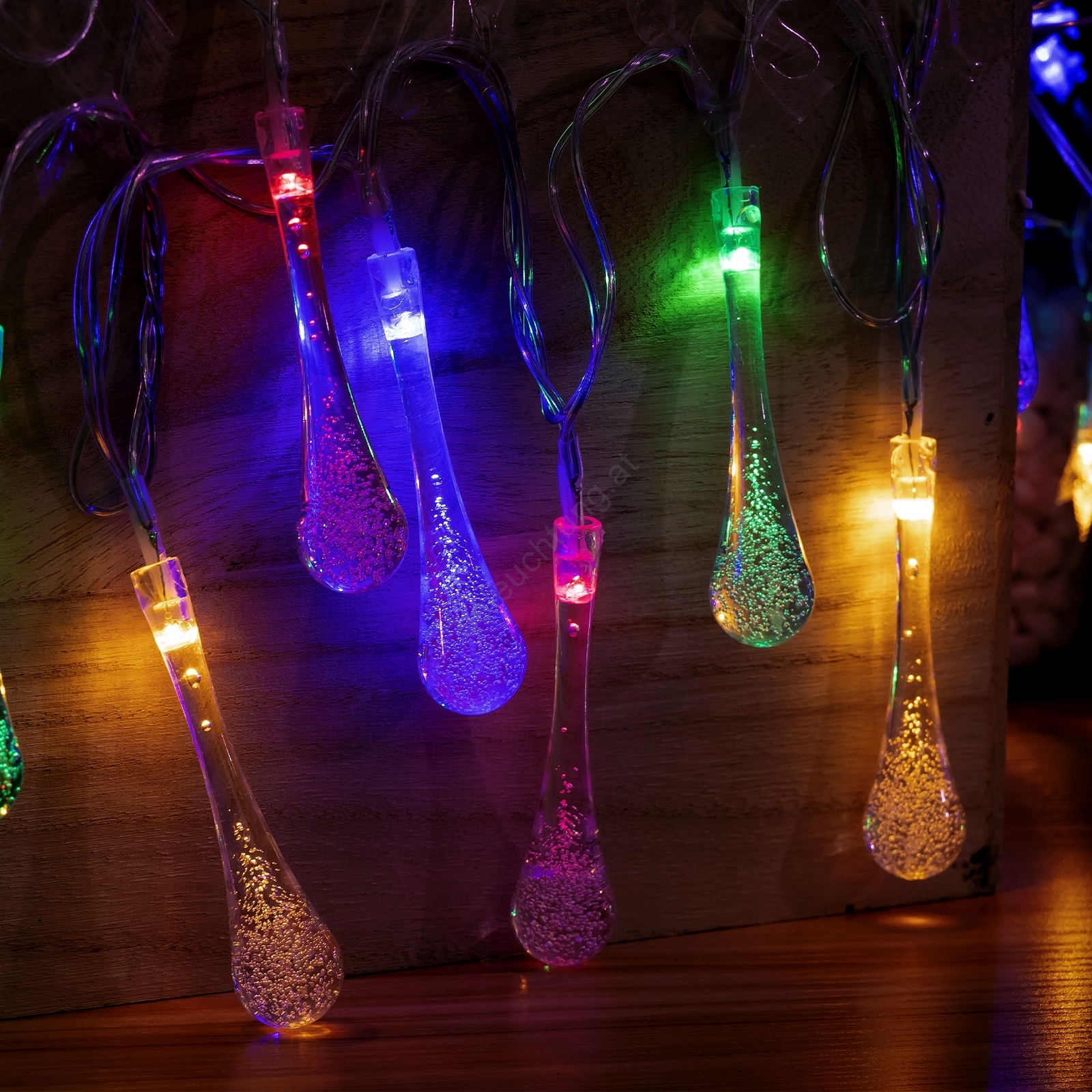 Aigostar - LED-Außen-Weihnachtslichterkette, 25 LEDs, 8 Funktionen, 3×AA-Batterien, 2,5 m, IP44, mehrfarbige Tropfen