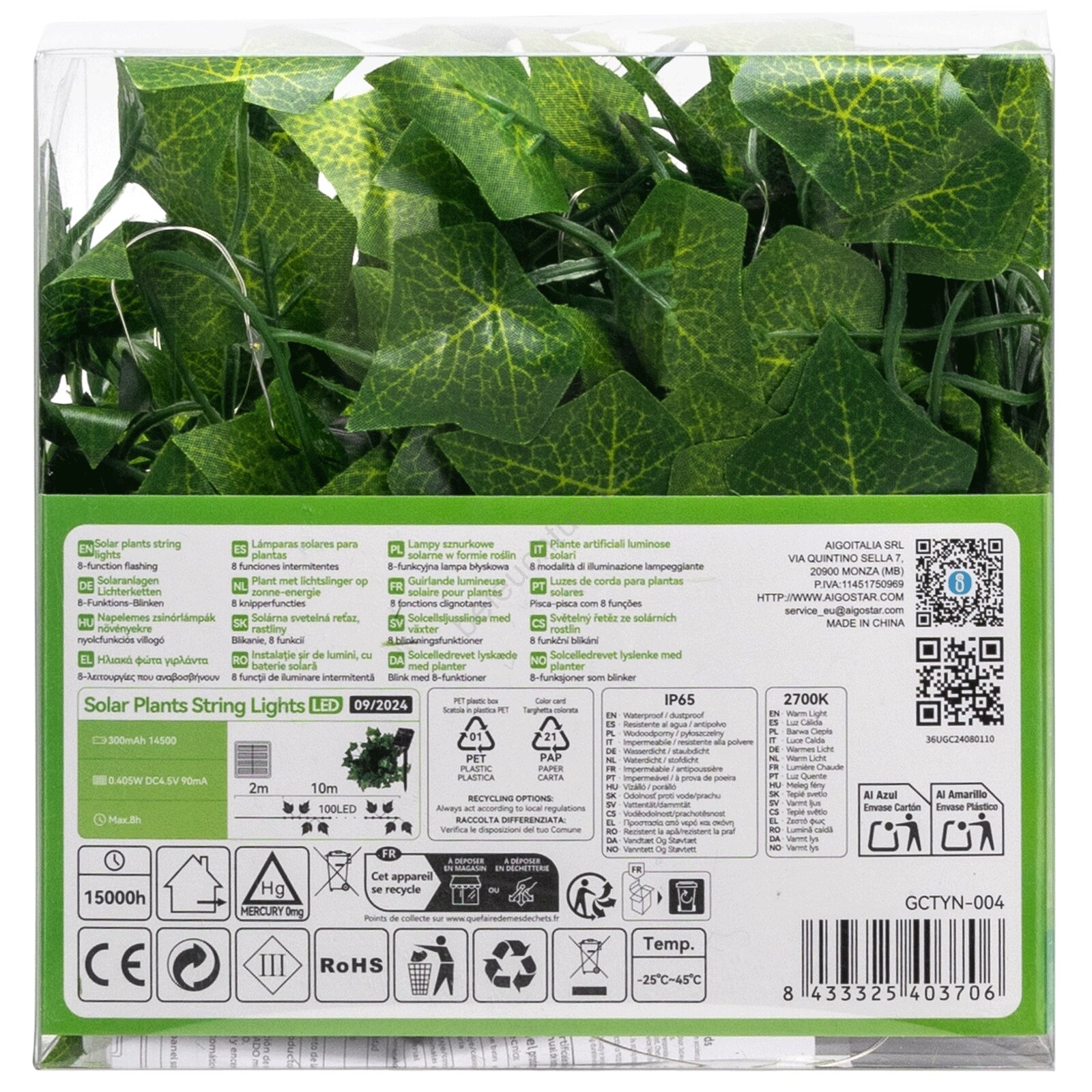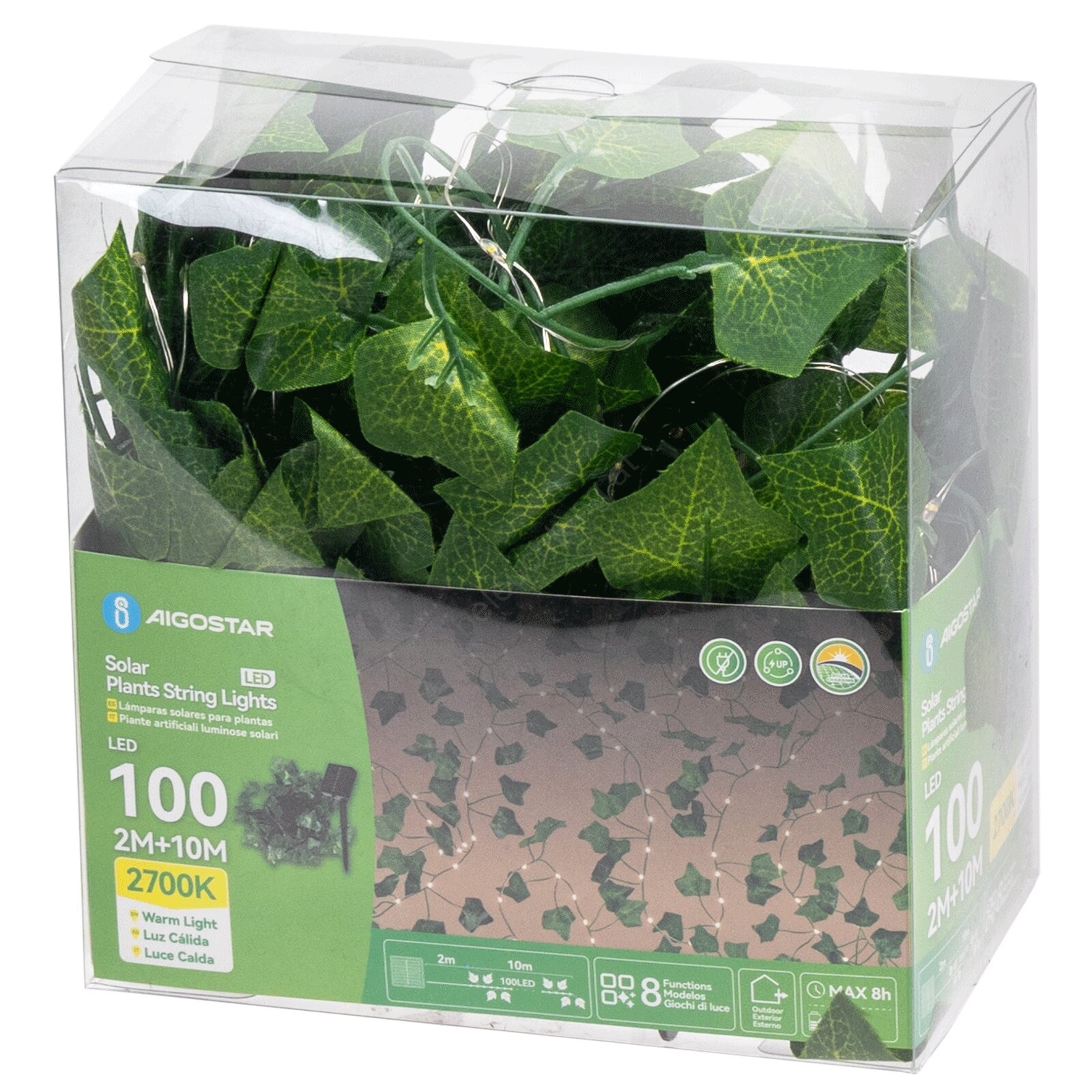 Aigostar - LED Solar-Lichterkette 100xLED/12m IP65 300 mAh warmweiß Efeu