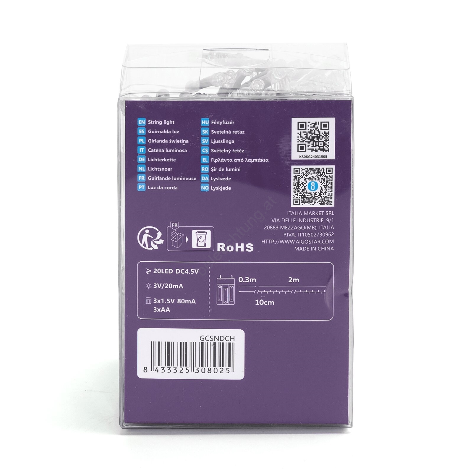 Aigostar - LED-Lichterkette, 100 LEDs, batteriebetrieben (3x AA), 10,3 m, mehrfarbig