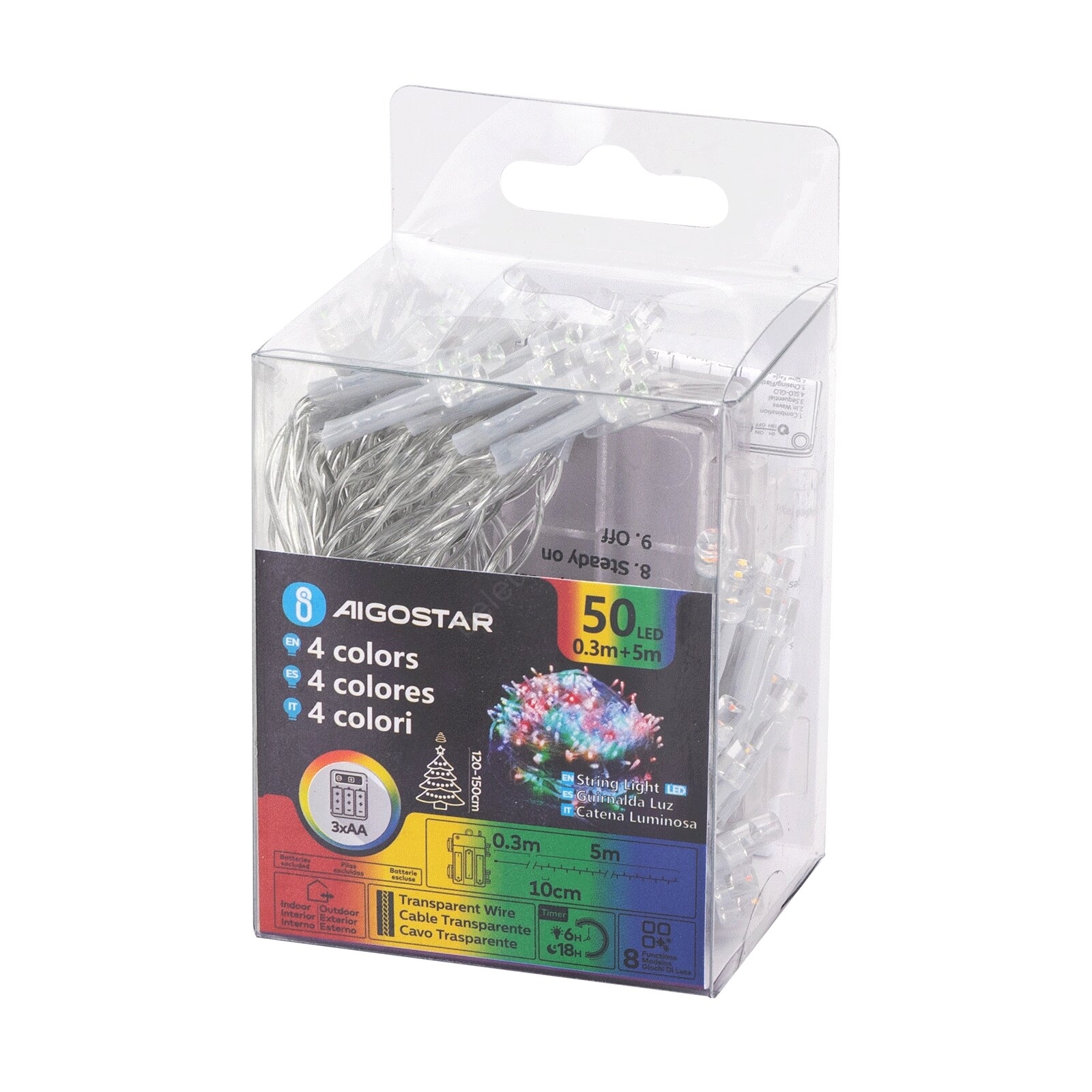 • Aigostar - LED-Außenlichterkette 50xLED/8 Funktionen 3xAA 5,3 m IP44 mehrfarbig