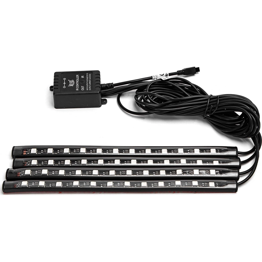 • Set aus 4 flexiblen LED-Streifen (jeweils 22,5 cm) – ideal zur Fußraumbeleuchtung oder Montage unter den Sitzen.