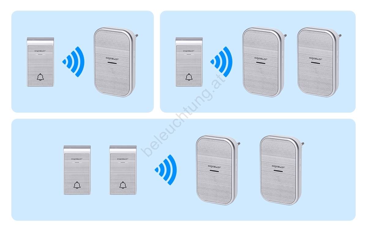 • Drahtloses Türklingel mit einer Signalreichweite von 150 m.