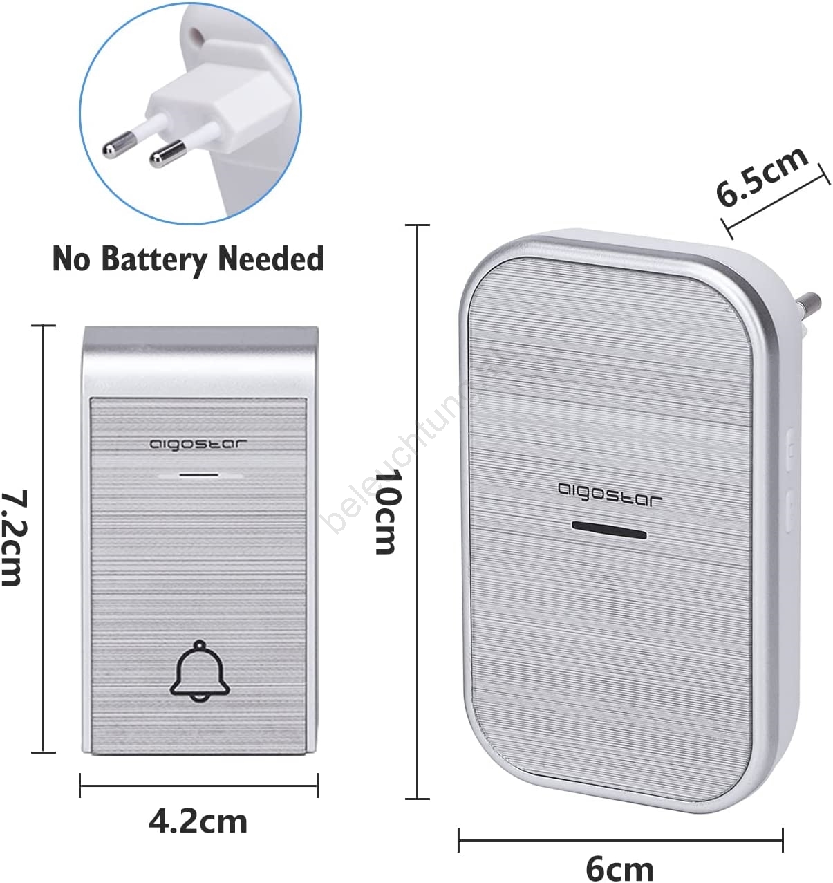 Aigostar - SET 2x Kabellose Steckdosen-Türklingel 230V/12V IP44 silbern