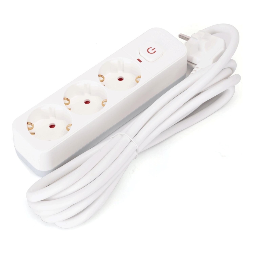 Aigostar - Verlängerungskabel mit Schalter 3-fach Typ F 3m SCHUKO weiß