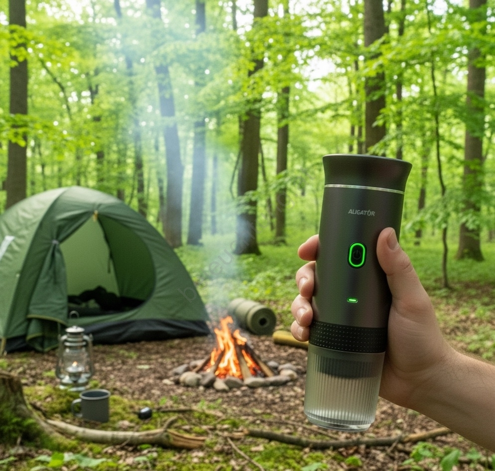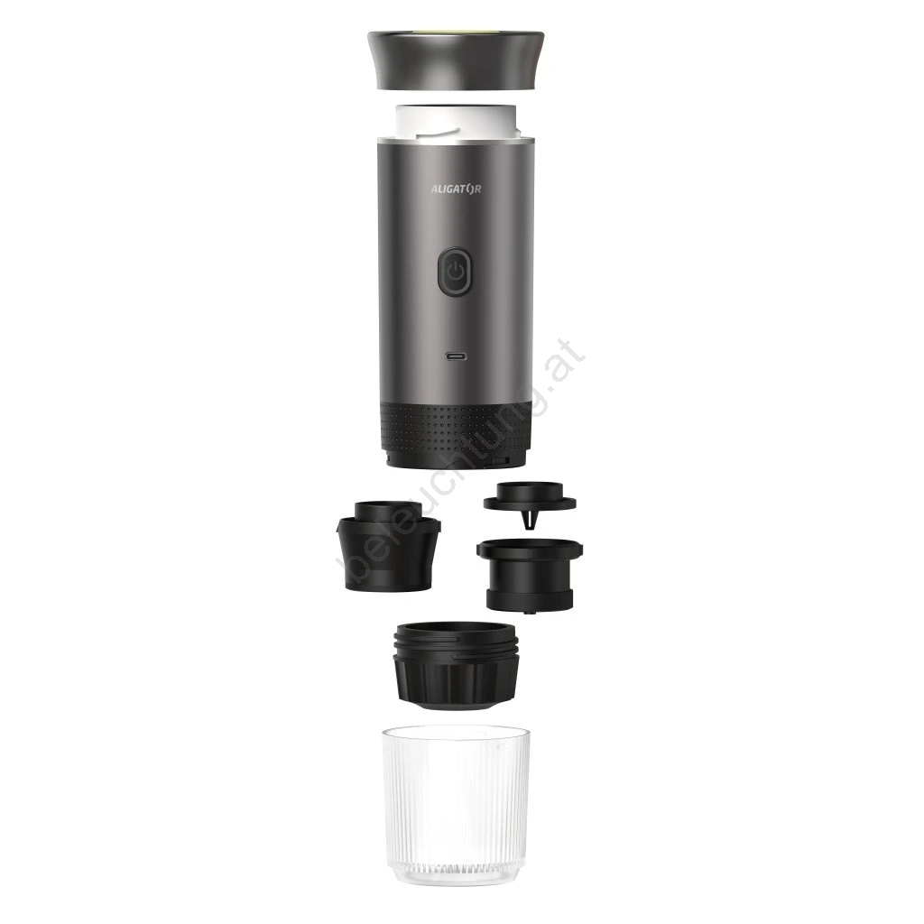 Aligator ACM002 - Tragbare, wiederaufladbare Reisekaffeemaschine PortaCaffé 3‑in‑1, 72 W / 7500 mAh, grau