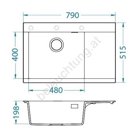 • Lieferumfang: Granitspüle, Befestigungsklammern, Siebkorbventil 3 1/2, Siphon mit Abzweig für die Geschirrspülmaschine.