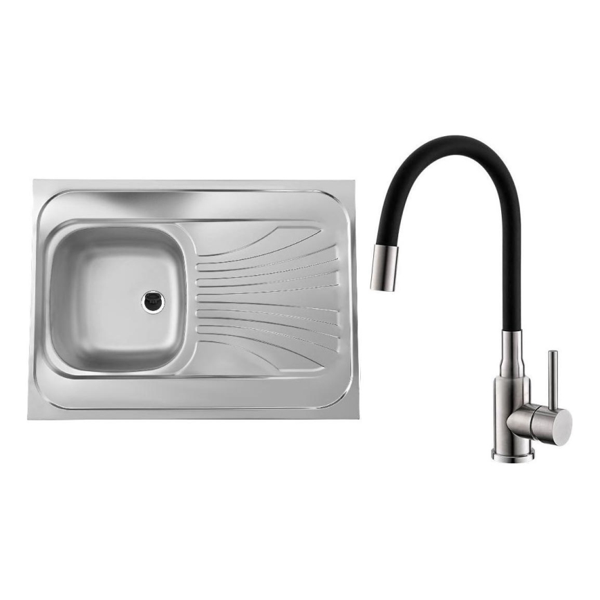 ALVEUS SETA24019 - Küchenspüle CLASSIC 80 x 60 cm + Spültischarmatur mit flexiblem Auslauf MINTAS 34 cm Edelstahl/Schwarz