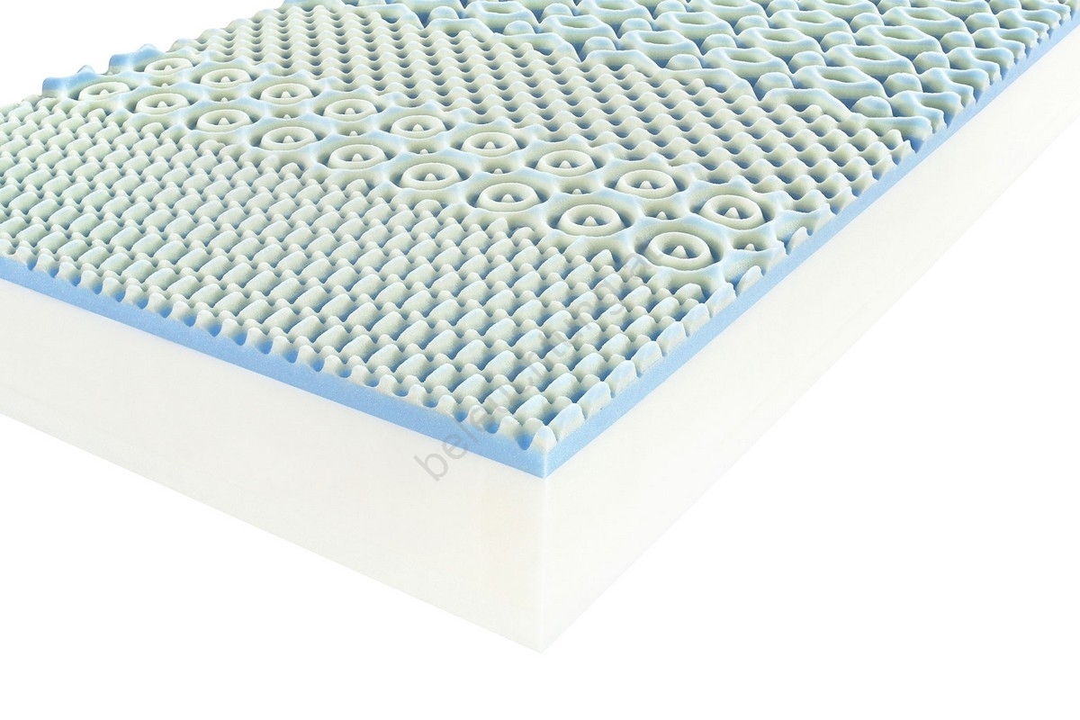 • Oberste Schicht mit 3D-Memory-Schaum in Kombination mit hybridem, kaltgeschäumtem Schaum – inklusive 7-Zonen-Wellness-Profil; die untere Schicht ist Flexi-Kaltschaum, kaltgeschäumt, mit Massageprofilierung.