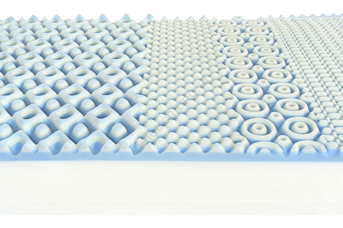 • Die oberste Schicht mit 3D-Memory-Schaum in Kombination mit hybridem, kaltgeformtem Schaum – inkl. 7-Zonen-Wellness-Profil – sowie eine untere Schicht aus Flexi-Kaltschaum mit Massageprofilierung.