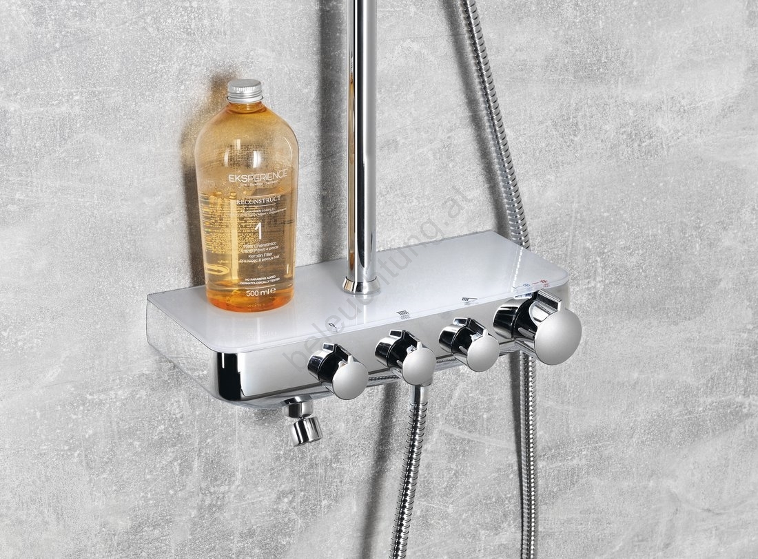 • Die Duschsäule ist aus Messing gefertigt und verfügt über eine Chromoberfläche.