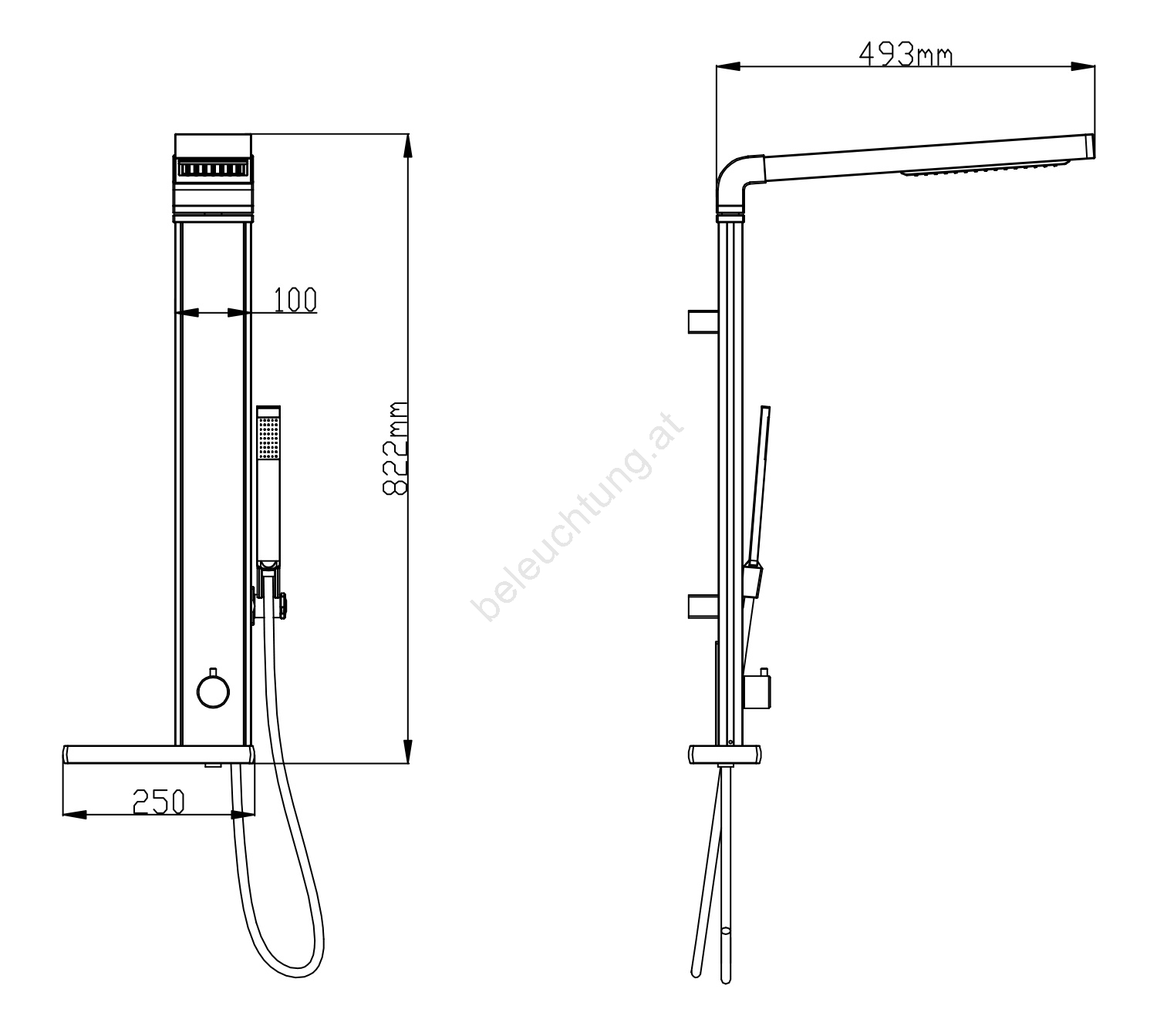 • Die Duschsäule ist zum Anschluss an eine Mischbatterie vorgesehen.