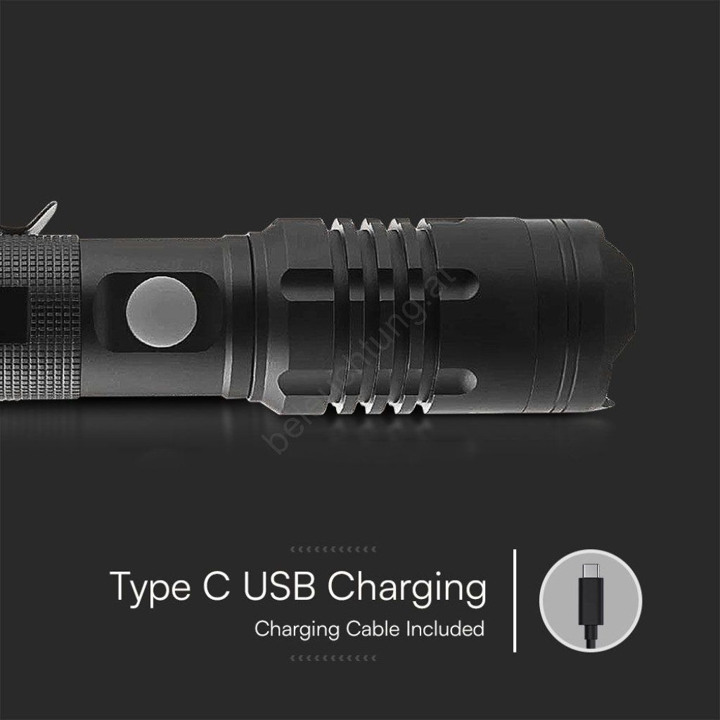• Robuste Outdoor-Akku-Taschenlampe.