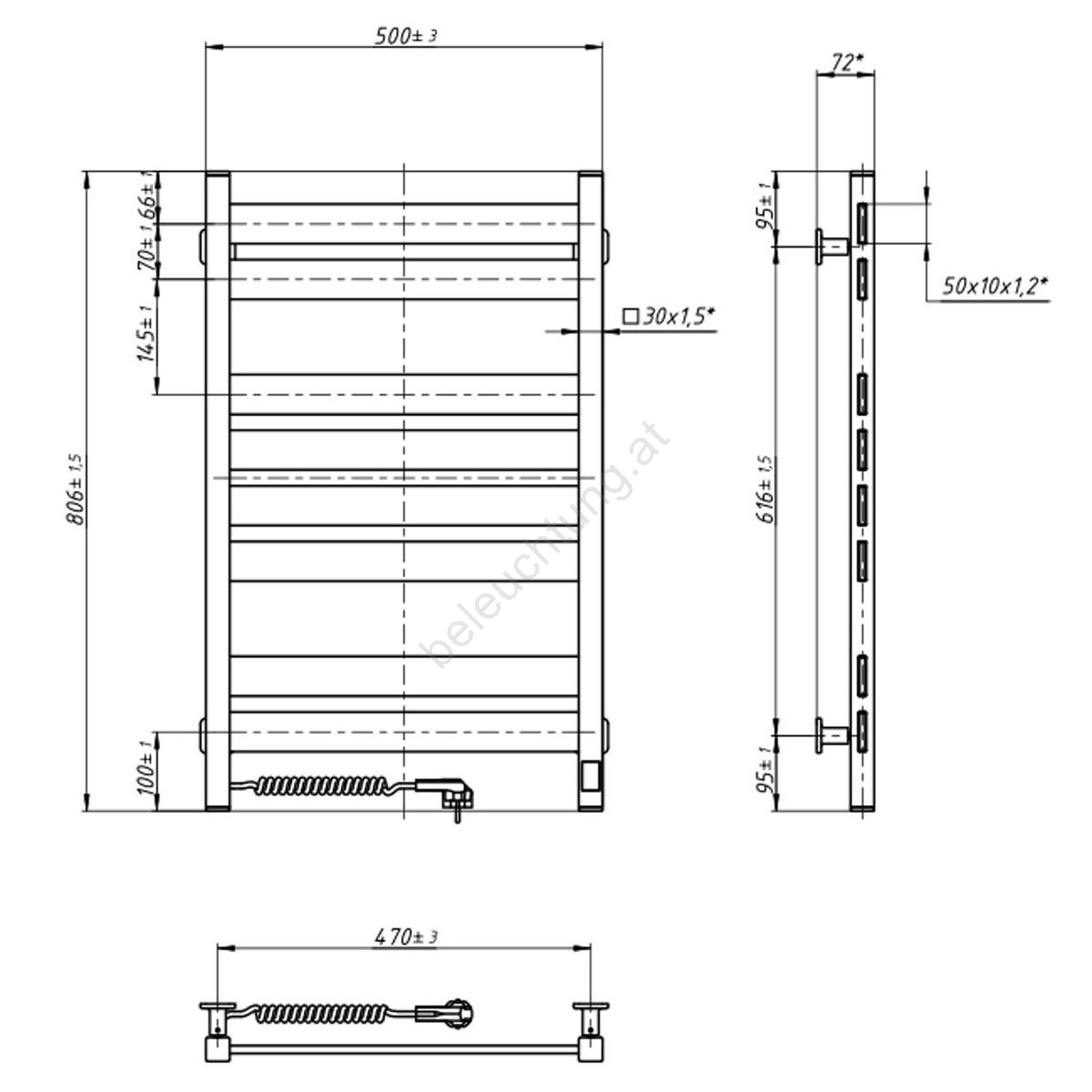 Handtuchheizkörper (Leiter) LARGO mit Thermostat, 432 W/230 V, 80,6 cm, IP44, Weiß, links, eckig