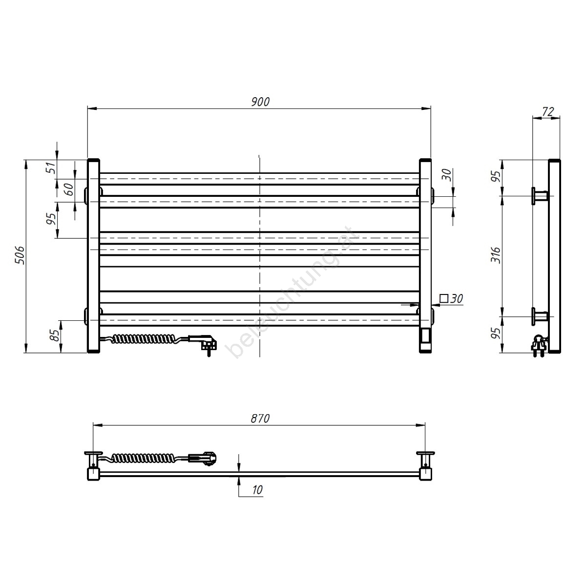 Badezimmer-Leiterheizkörper mit Thermostat AVANGARD 300 W/230 V, 50,6 cm, IP44, weiß, links, eckig