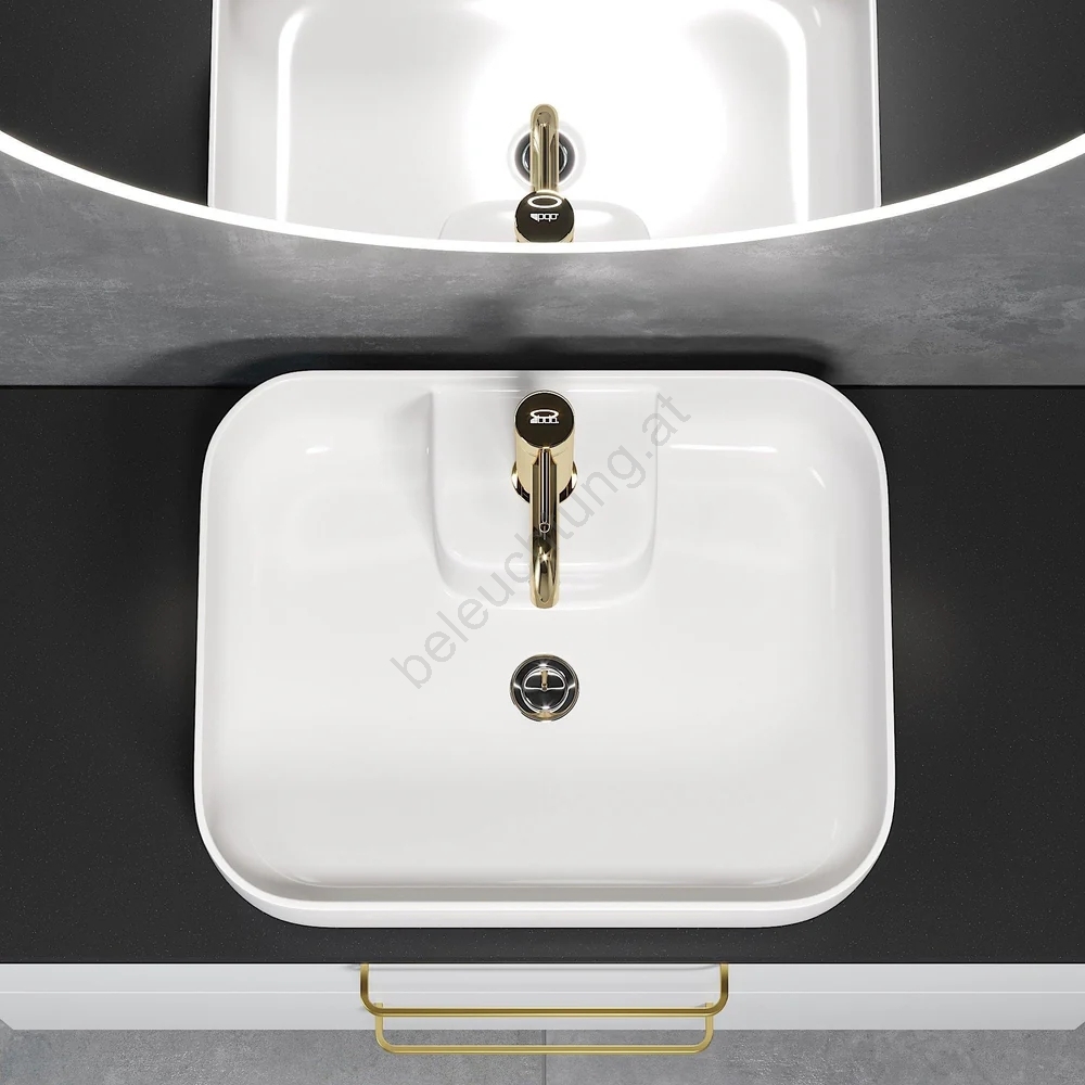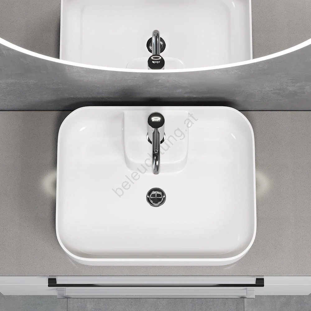 • Das Waschbecken ist für die Aufsatzmontage vorgesehen, was flexible Platzierung und die Kombination mit unterschiedlichen Waschtischplatten ermöglicht.