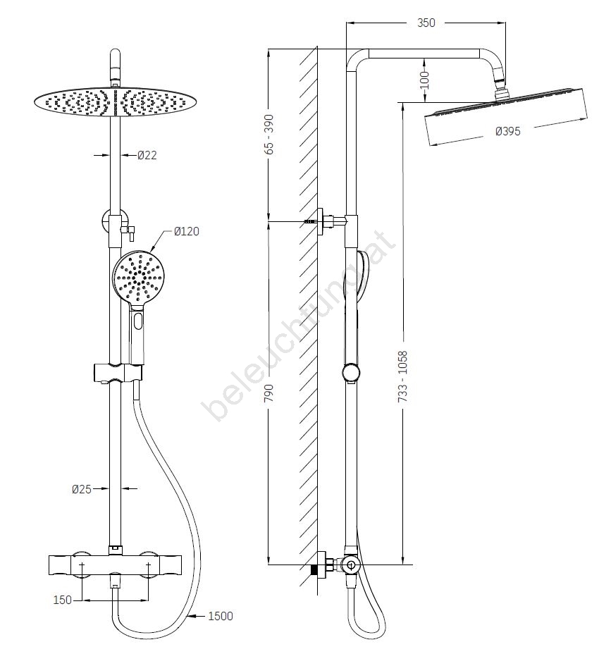 • Das Set umfasst eine Thermostat-Armatur aus massivem Messing.