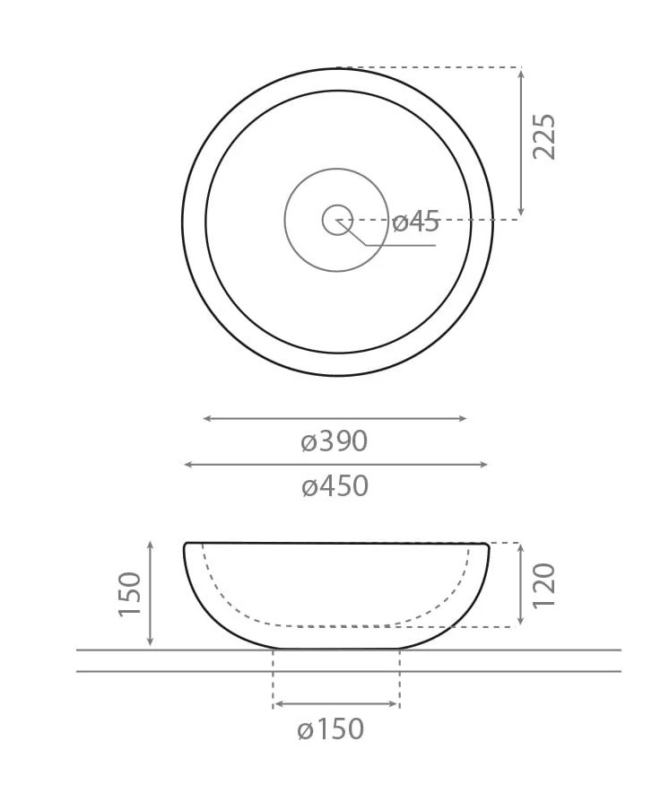 • Bathco 00317 - Aufsatzwaschbecken PUKET Ø 45 cm, Stein/Grau