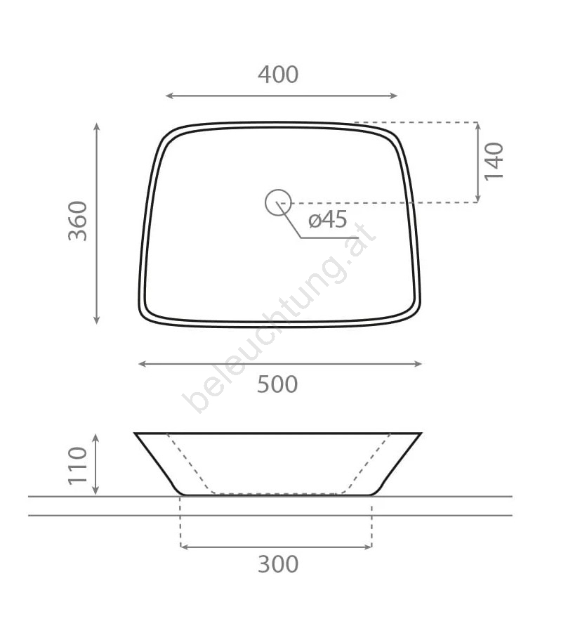 • Ohne Bohrung für die Armatur.