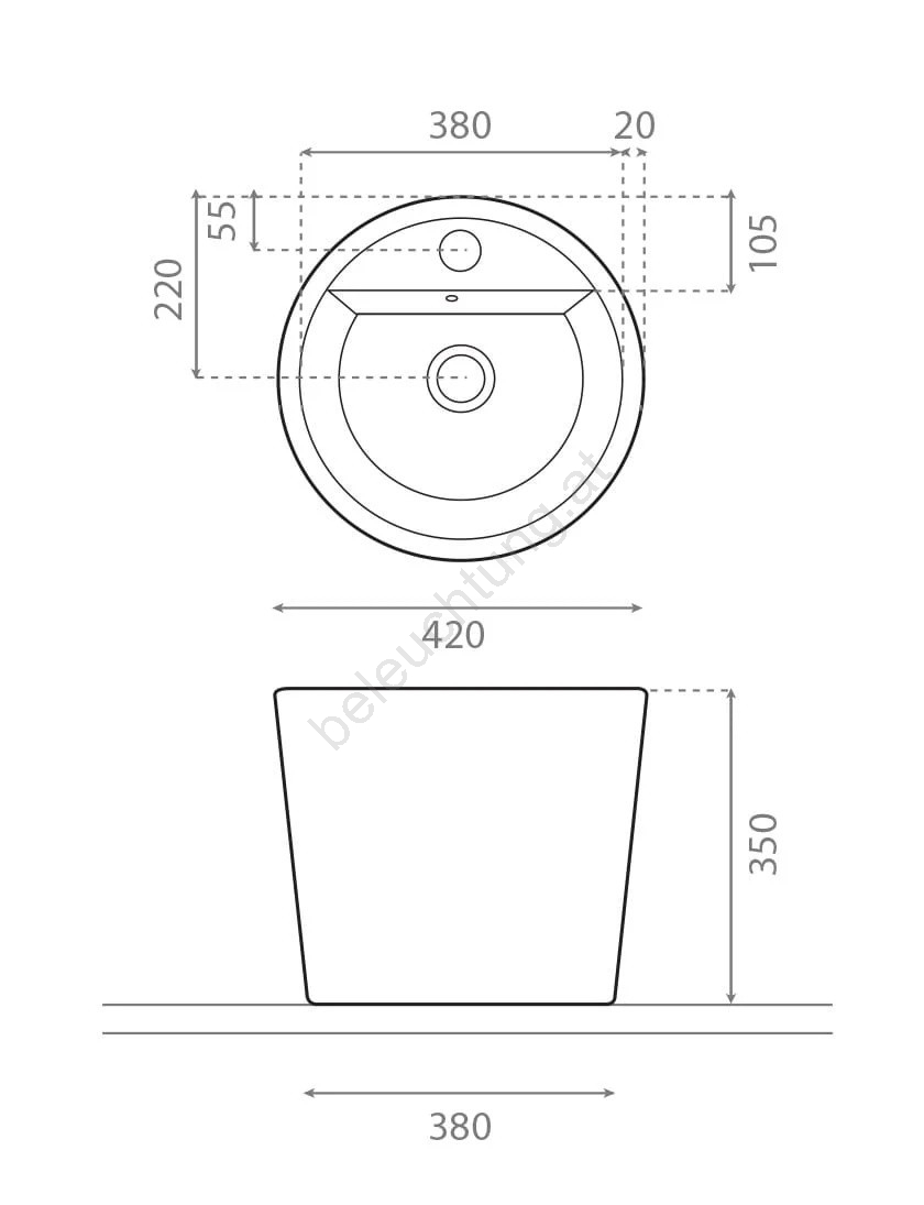 • Lieferumfang: Waschbecken ohne Siphon und Armatur.