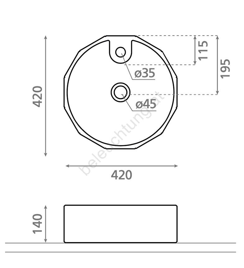 • Das Waschbecken ist zur Montage auf einer Waschtischplatte geeignet.
