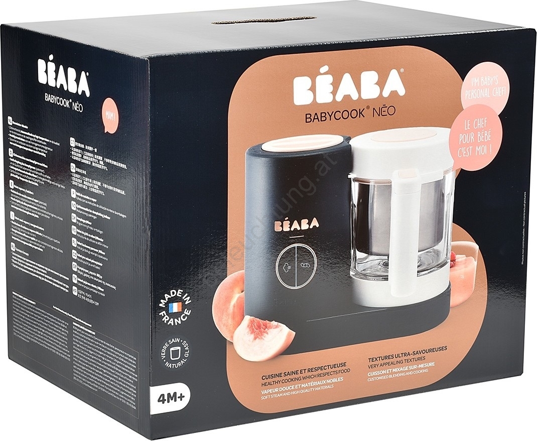 • Das völlig neue Modell Babycook NEO verfügt über einen Glasbehälter mit einem Fassungsvermögen von 1250 ml und einen Edelstahleinsatzkorb mit 1000 ml Volumen.