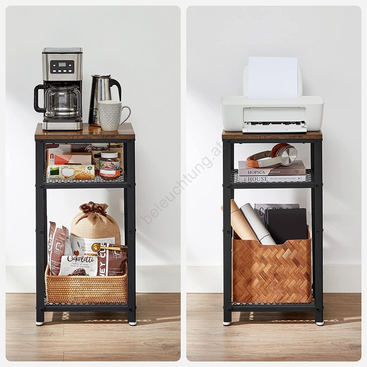 • Dank seiner schlanken Form nimmt er wenig Platz auf dem Boden ein und bietet gleichzeitig ausreichend Stauraum durch 3 Ablageflächen.