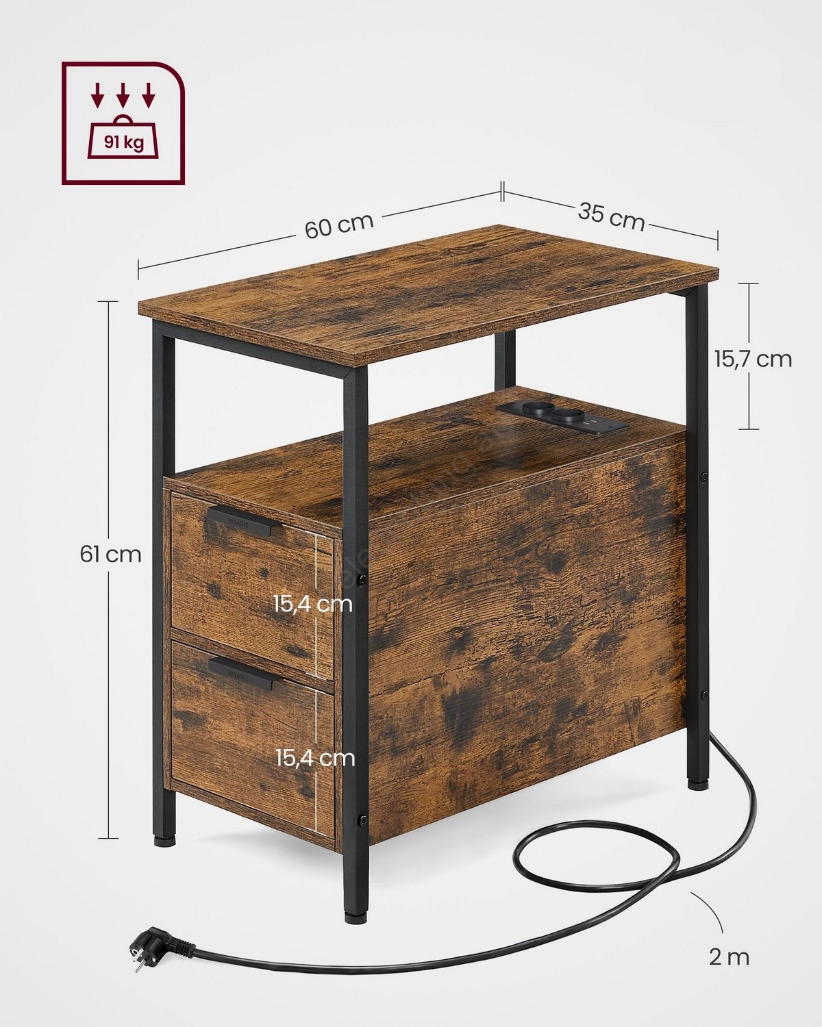 • 2 integrierte Schubladen und 2 USB Anschlüsse zum gleichzeitigen Laden mehrerer Geräte.