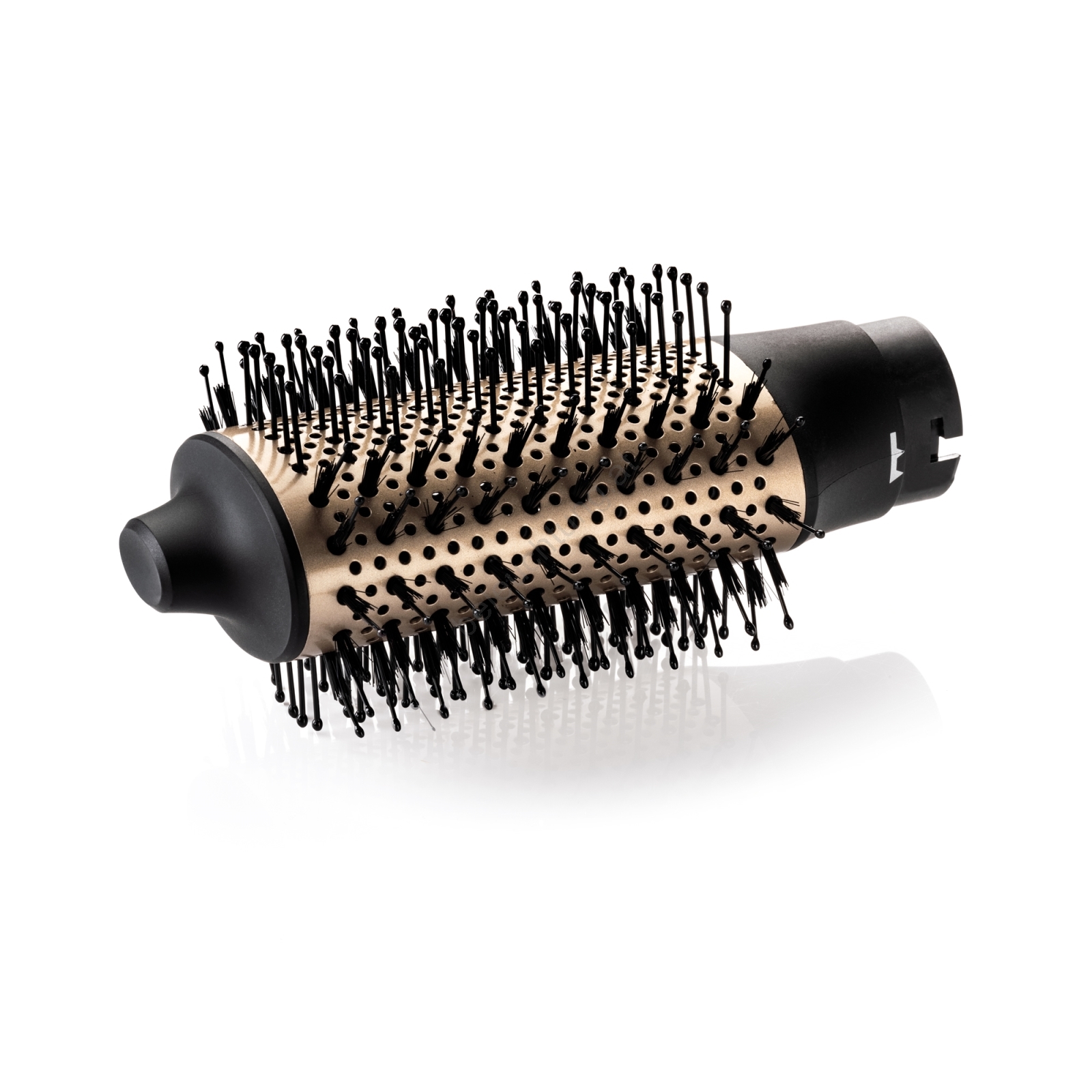 • Im Lieferumfang sind 8 Aufsätze enthalten: Volumenbürste, Rundbürste 32 mm, Rundbürste 50 mm, Lockenaufsatz 19 mm, Entwirrbürste, Diffusor und Konzentratordüse.